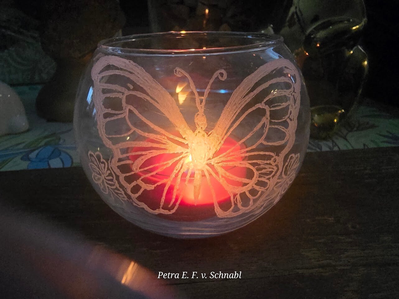 graviertes Teelichtglas - Frühling Schmetterling