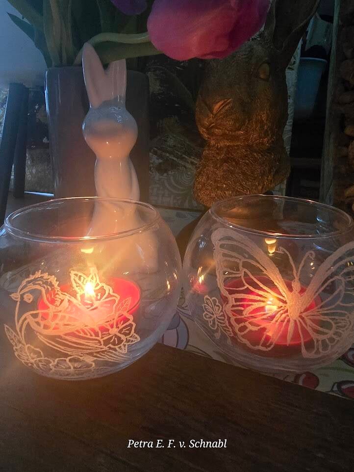 Selbstverständlich sind auch Bilder und Glasgravuren (Gläser, Bilder und Teelichthalter) mit österlichen Motiven möglich. Schreibe mir für Vorschläge und Ideen über das Kontaktformular. Bestelle über das Kontaktformular oder nutze den Warenkorb bei den untenstehenden einzelnen Produkten selbst. Auch die sozialen Medien kannst du gerne für deine Bestellungen, Anfragen und Ideen nutzen. Dazu schreibe mir einfach eine Nachricht.